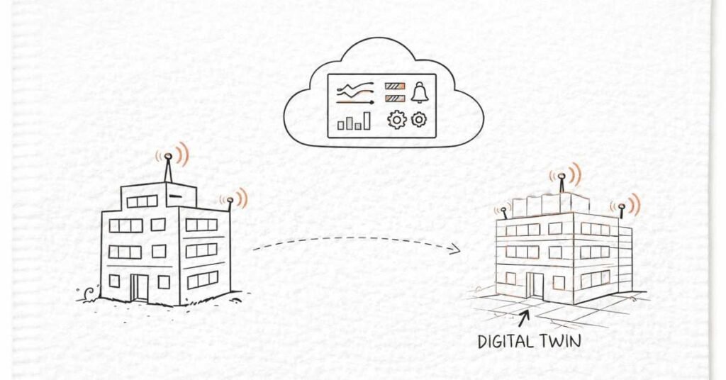 A digital twin is a virtual replica of a physical structure that’s continuously updated with real-world data.