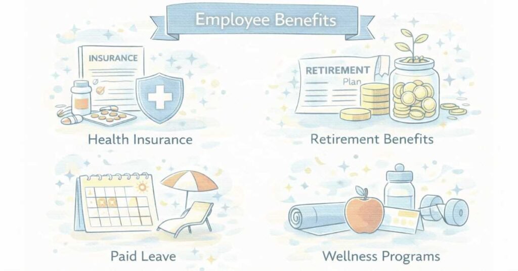 Benefits Landscape: Employee benefits in India typically include statutory requirements (PF, ESI, gratuity), health insurance for employee and family, accidental and life insurance, paid leave (earned leave, casual leave, sick leave), and increasingly wellness programs, mental health support, and flexible benefits.