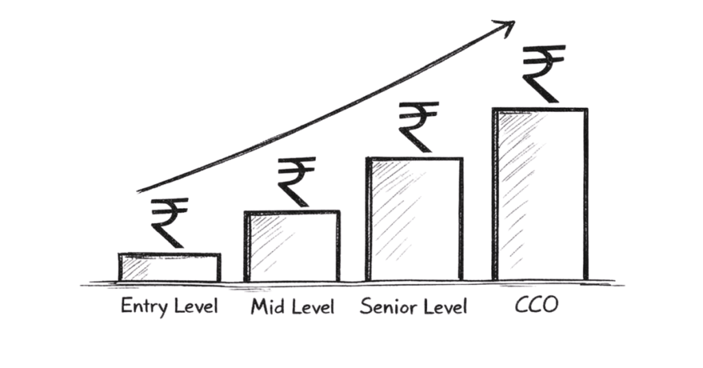 This is where compliance careers become financially attractive. Mid-level compliance officers with 5-7 years of experience earn an average of ₹12-24 lakhs annually. The wide range reflects specialization, industry, and specific role scope.6figr+1
