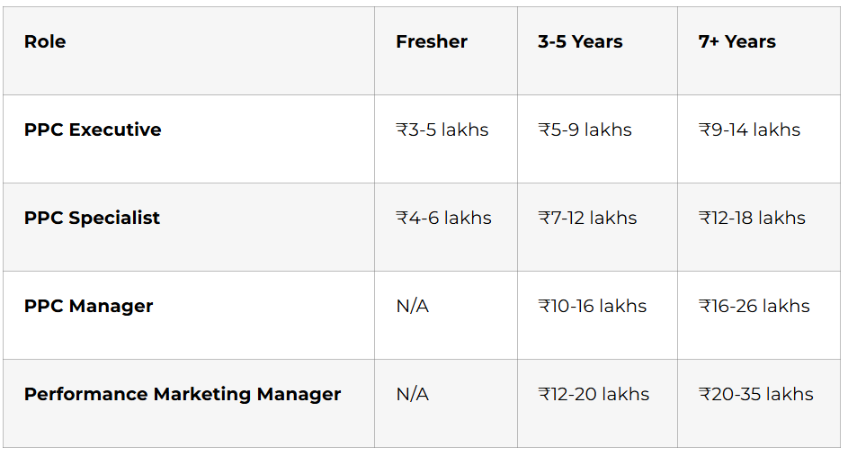 - Head of Growth/Performance Marketing: ₹30-50 lakhs