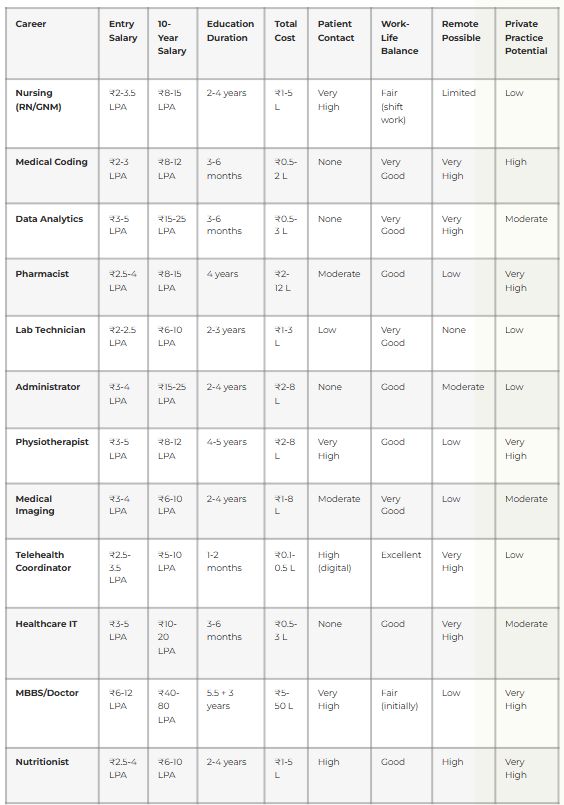 Best Fits: MBBS, Healthcare Administrator, Healthcare Data Analyst