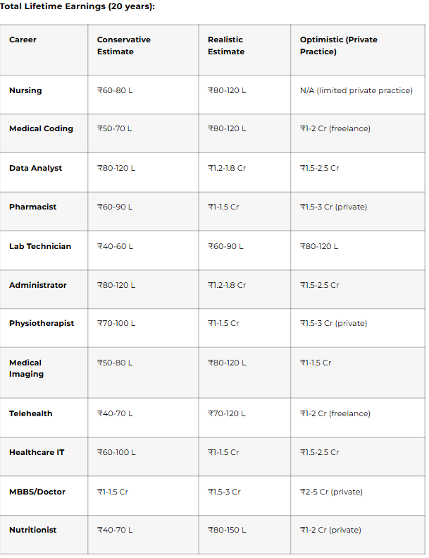 - MBBS/Doctor – Private practice, ₹50-150+ LPA possible