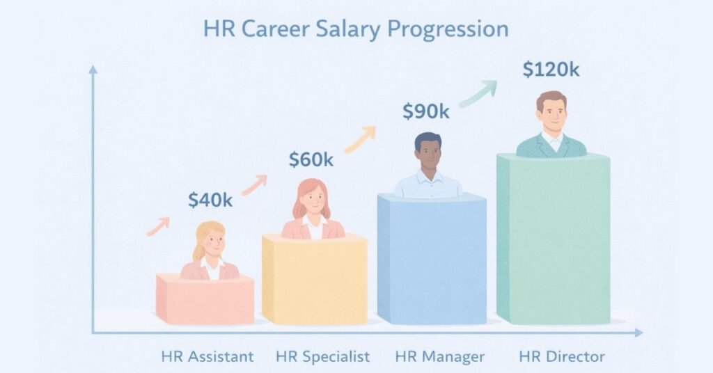 Years 0-2 (Entry Level): You’ll likely start as an HR Assistant, HR Executive, or Junior Recruiter with a monthly salary of ₹15,000-25,000. At this stage, your focus is on learning HR processes, supporting senior team members, handling administrative tasks, and building foundational knowledge of employment laws and HR practices. Common roles include HR Assistant, Recruitment Coordinator, HR Executive, and Payroll Executive.