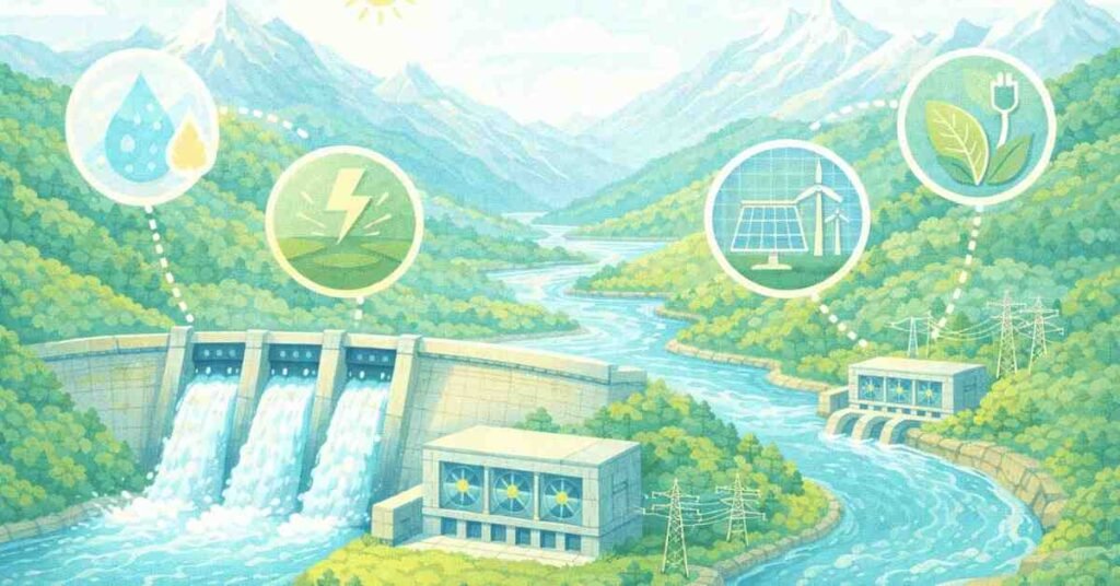 Hydropower is one of the oldest and most reliable forms of renewable energy. In India, hydropower contributes significantly to the national energy mix, especially in states like Himachal Pradesh, Uttarakhand, and Arunachal Pradesh. Hydropower plants convert the energy of flowing water into electricity, providing clean and sustainable power.