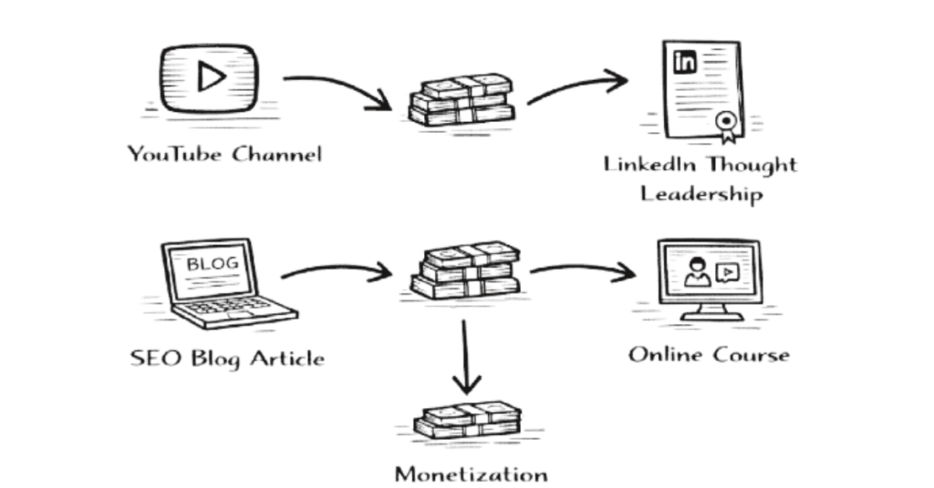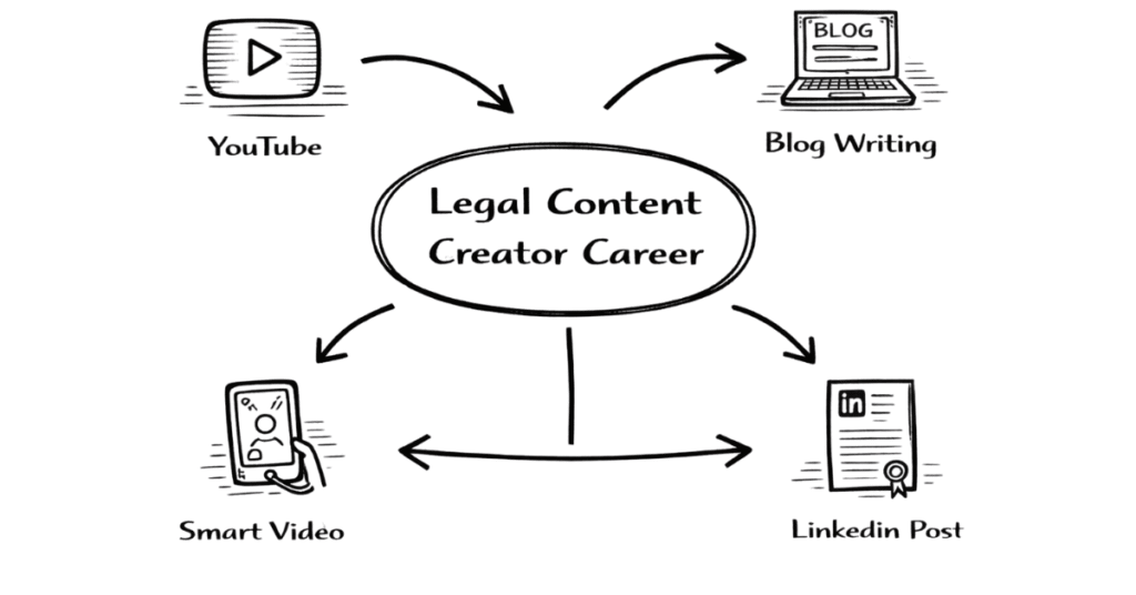 Courtroom victories fade; YouTube videos and LinkedIn posts compound forever. Legal content creators reach millions daily—explaining Supreme Court judgments, demystifying GST notices, career-coaching law students—while earning through sponsorships, courses, consulting. No bar council enrollment needed, work from anywhere, scalable income without client acquisition.