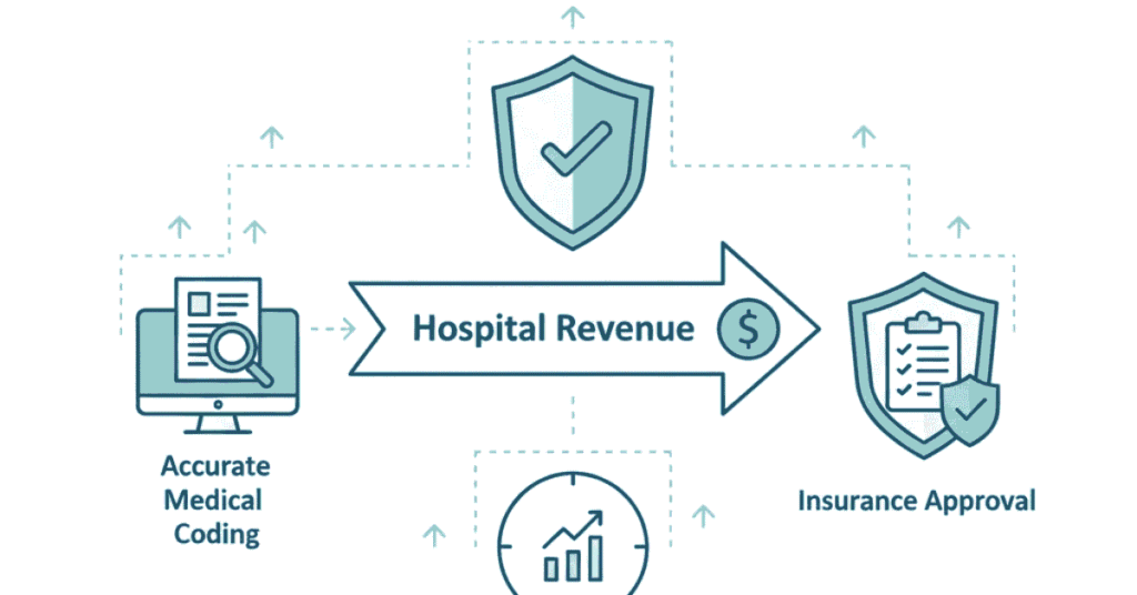 Insurance companies audit medical records. Incorrect coding is considered fraud (whether intentional or not). Hospitals face legal penalties, reputation damage, and claim denials. Accurate medical coders protect hospitals from these risks.