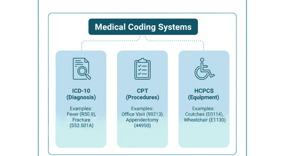 The Three Coding Systems Explained Simply: ICD-10, CPT, and HCPCS