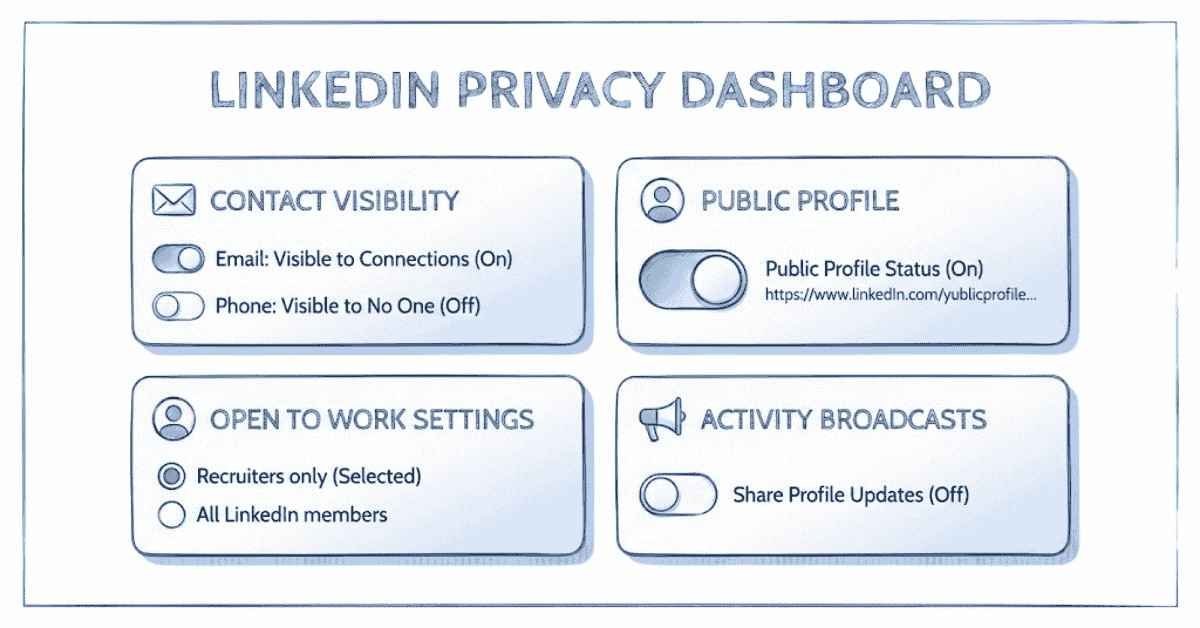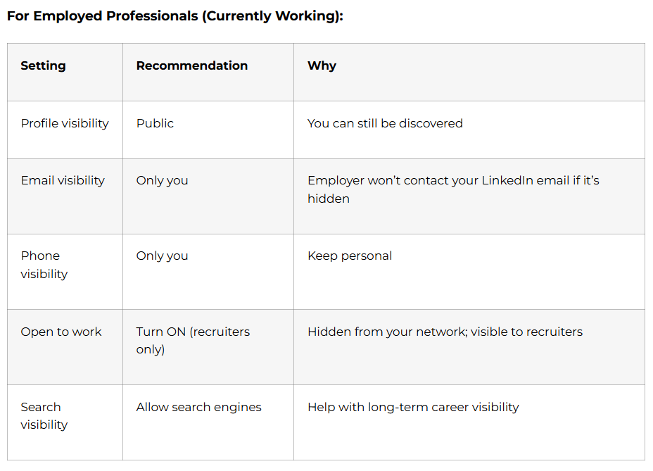 - Select “Only you” (most secure) or “Your connections” (if actively job searching)