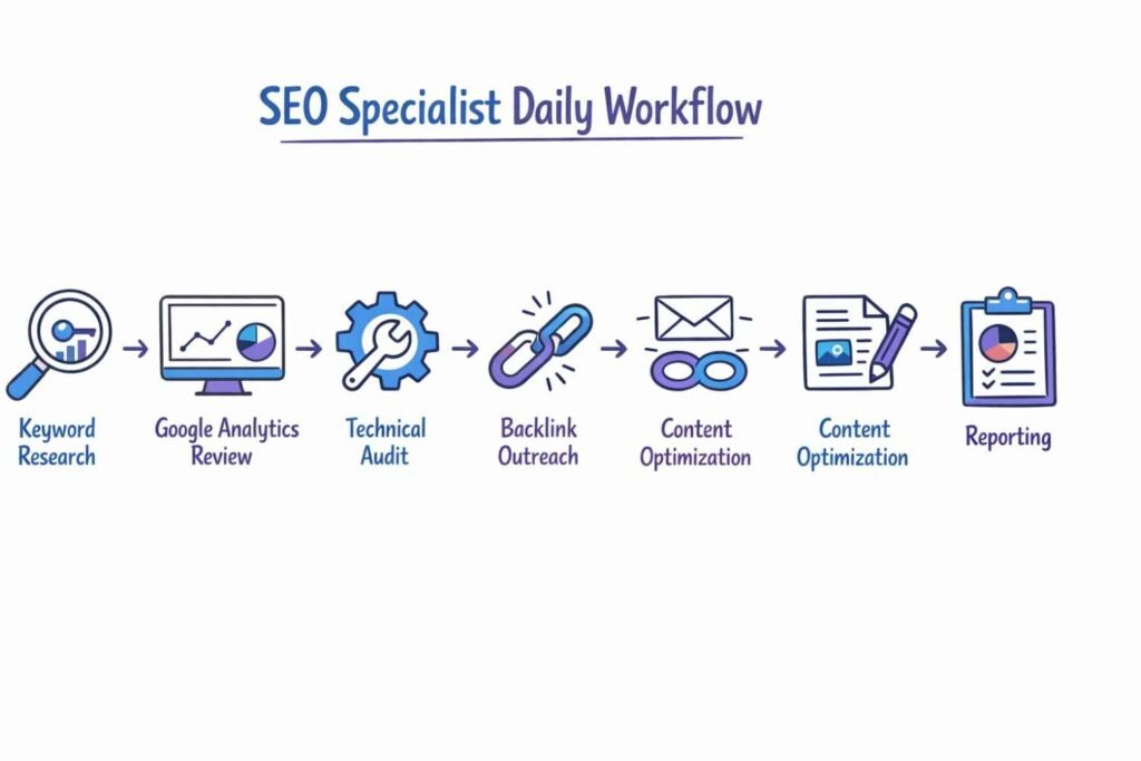 Let’s break down what a typical workday looks like for an SEO specialist in India: