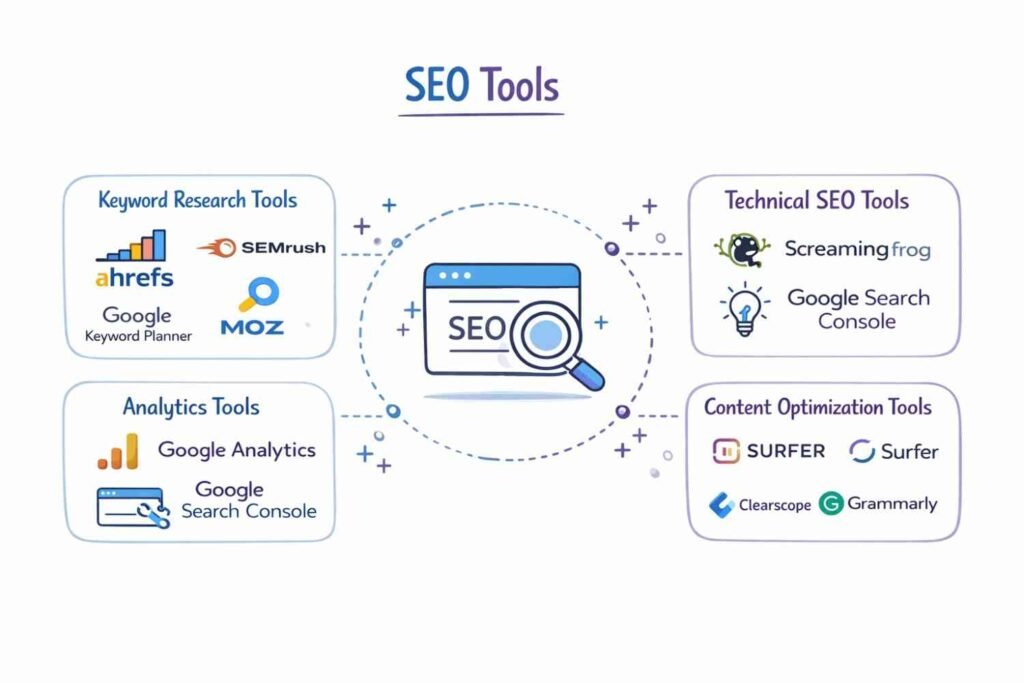 Most professionals start with free tools like Google Search Console and Google Analytics, then gradually invest in paid tools as they gain experience.