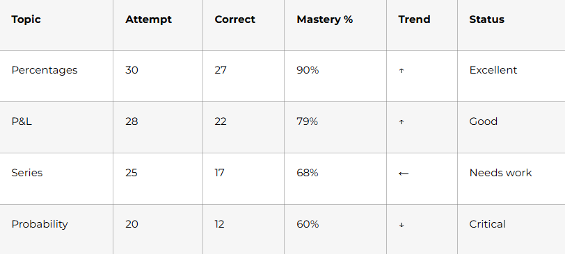 Dashboard Element 2: Topic-Wise Mastery Matrix