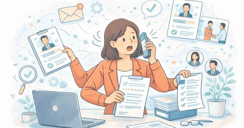 Morning (9:00 AM – 12:00 PM): Your day starts reviewing applications that came in overnight—about 40 resumes for three open positions. You quickly screen these, identifying 8 candidates worth phone screening and rejecting the rest with template emails.