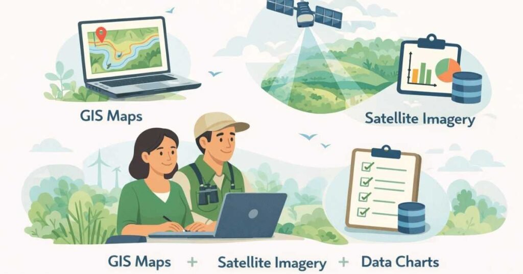 GIS (Geographic Information Systems) and remote sensing are powerful tools for mapping and analyzing environmental changes such as land use, forest cover, wetlands, or urban expansion.