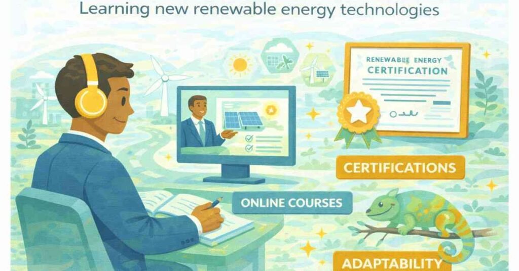 Renewable energy technology is evolving rapidly. New innovations in solar panels, wind turbines, batteries, and green hydrogen mean that professionals need to keep learning and updating their skills.