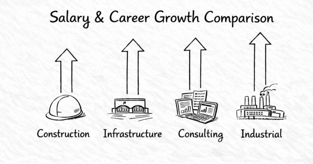 Civil engineers work across multiple industry sectors—each with different types of projects, work culture, growth opportunities, and challenges. Understanding these sectors helps you target your job search and career planning more effectively.