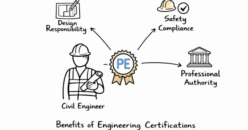 In India, there is growing importance given to civil engineering certifications like PE (Professional Engineer) by professional bodies, along with global credentials like PMP, LEED, and software-specific certifications. These do not replace your BTech degree, but they add a powerful layer of credibility and employability.