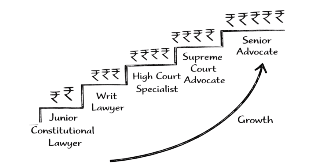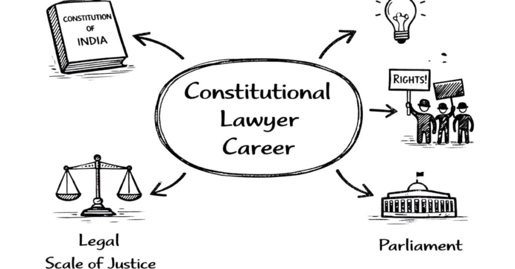 Constitutional lawyers command respect beyond fees. Entry-level advocates earn ₹5-12 lakhs building writ practice, mid-career lawyers ₹20-50 lakhs handling PILs/oral mentions, senior advocates ₹1-5 crores+ arguing marquee constitutional benches. Long-term prestige outweighs immediate corporate salaries. If intellectual gravitas, precedent-setting work, and contributing to democratic evolution excites you, constitutional law offers India’s most prestigious legal careers.
