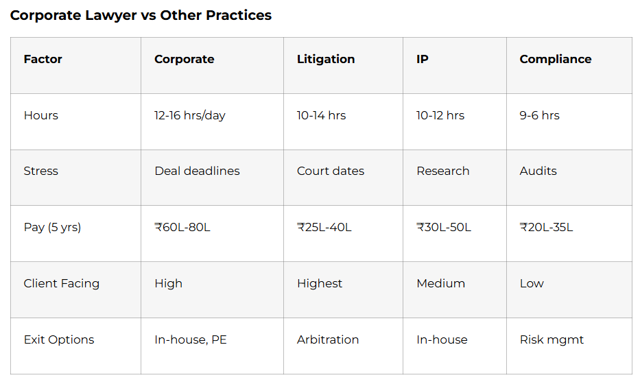 Corporate law rewards relentless execution, commercial judgment, and stamina above all. Tier-1 firm associates literally print money for 5-7 years before deciding—partner track, in-house, or entrepreneurship. The hardest, highest-paying legal game in India today.