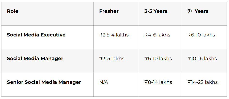 Growth Rate: Expect 30-50% salary increase from fresher to 3-year mark through job switches or promotions.