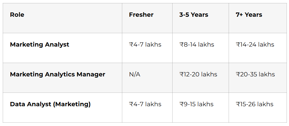 - Marketing Analytics Manager: ₹20-35 lakhs