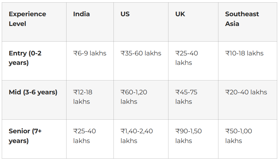 - Year 10+: ₹35-60+ lakhs (Leadership roles)