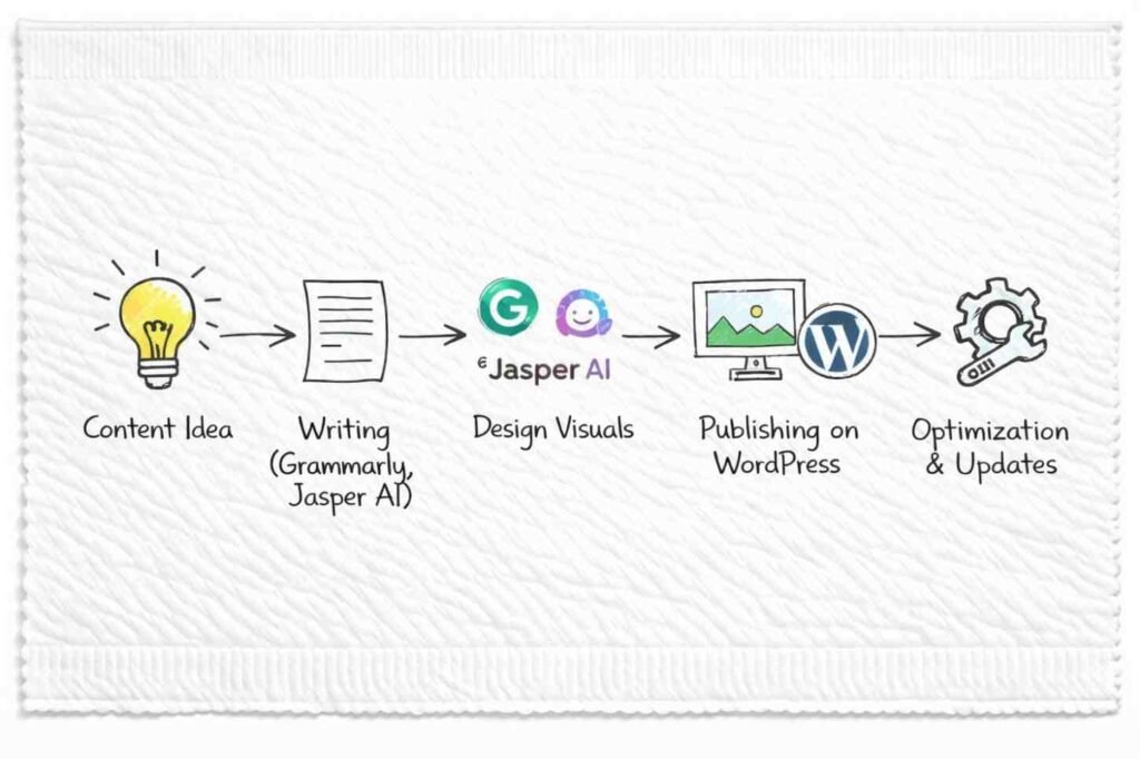 - Content: WordPress + Canva Free + Grammarly Free