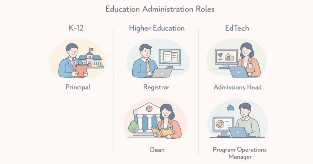 - Higher-ed administration: Experience in academic offices, exams, admissions, hostel, or registrar cells, combined with policy/compliance aptitude, leads to registrar/dean-track roles.