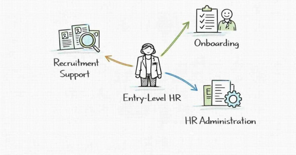 Roles: HR Assistant, HR Coordinator, HR Trainee, Recruitment Coordinator, Junior HR Executive.