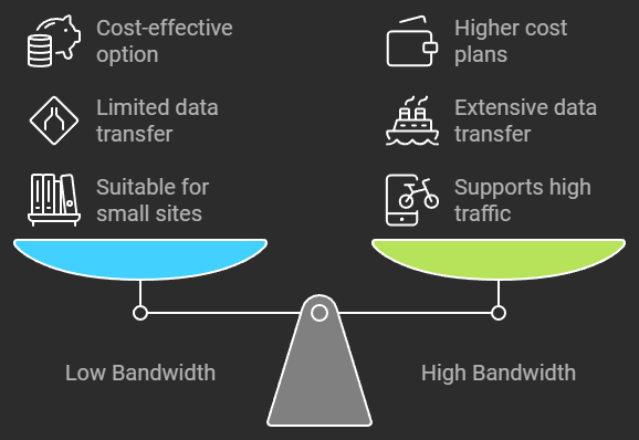 How Much Bandwidth Do I Need? Low bandwidth might be sufficient for a tiny blog or portfolio site, but if you anticipate having lots of traffic then choose higher bandwidth plans.