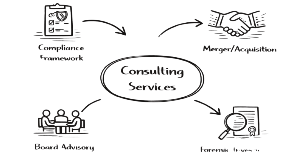 Legal consulting trades courtroom hours for boardroom influence—advising CEOs on ₹5,000 crore M&A strategy, designing compliance frameworks preventing ₹100 crore fines, and conducting forensic audits uncovering ₹500 crore frauds. No 14-hour drafting marathons; 4-hour strategy sessions generate ₹10 lakhs fees. India’s consulting market hits ₹1.5 lakh crores—Big 4 tax teams, boutique strategy firms, independent advisors serve 5,000+ corporates needing specialized legal brains.