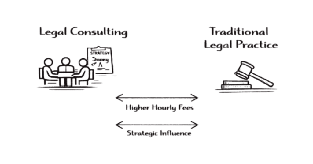 Legal consulting rewards strategic thinkers over executors. If you prefer ₹50 lakhs quarterly retainers over 50 cheque bounce cases, CEO strategy sessions over junior associate supervision, replicable frameworks over one-off drafting, consulting delivers highest lawyer leverage—maximum impact, minimum hours.
