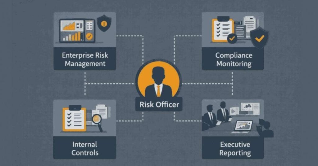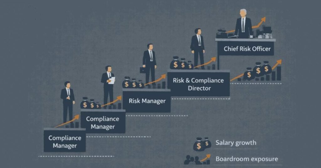 Risk officers protect company from enterprise risks. Entry ₹1,10,000-1,85,000 → CRO level ₹2,10,000-3,50,000+. Strategic importance. Board-level exposure. Executive compensation.