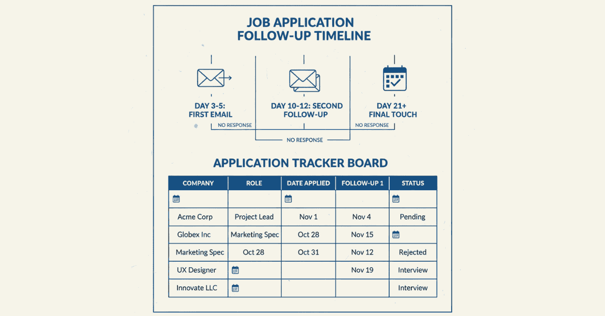 - Current status (applied, followed-up, rejected, interview scheduled)