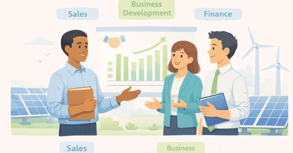 Sales, business development, and finance are crucial for the growth of the clean tech industry. These roles help companies attract customers, secure funding, and manage resources efficiently. Whether you are interested in technical or non-technical work, there is a place for you in sales, business development, and finance.