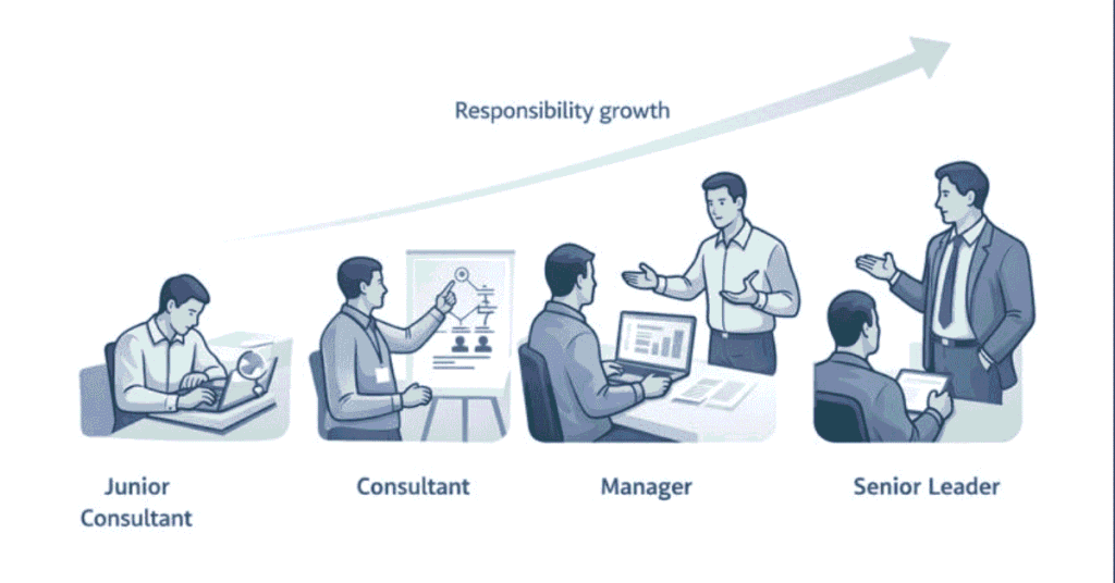 In simple words, a management consultant is like a problem-solver for businesses. Instead of working for one company, you get to work with many companies across different industries over time, helping them make better decisions and run more efficiently.